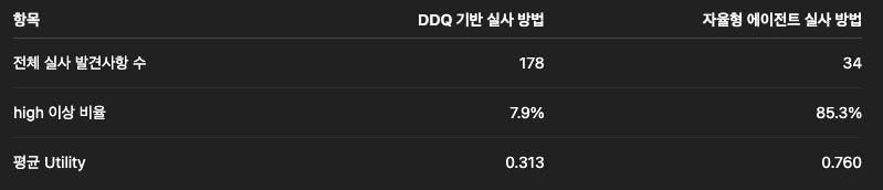 자율형 에이전트 방식은 더 높은 정보 유용성을 가진 발견사항을 집중적으로 산출합니다